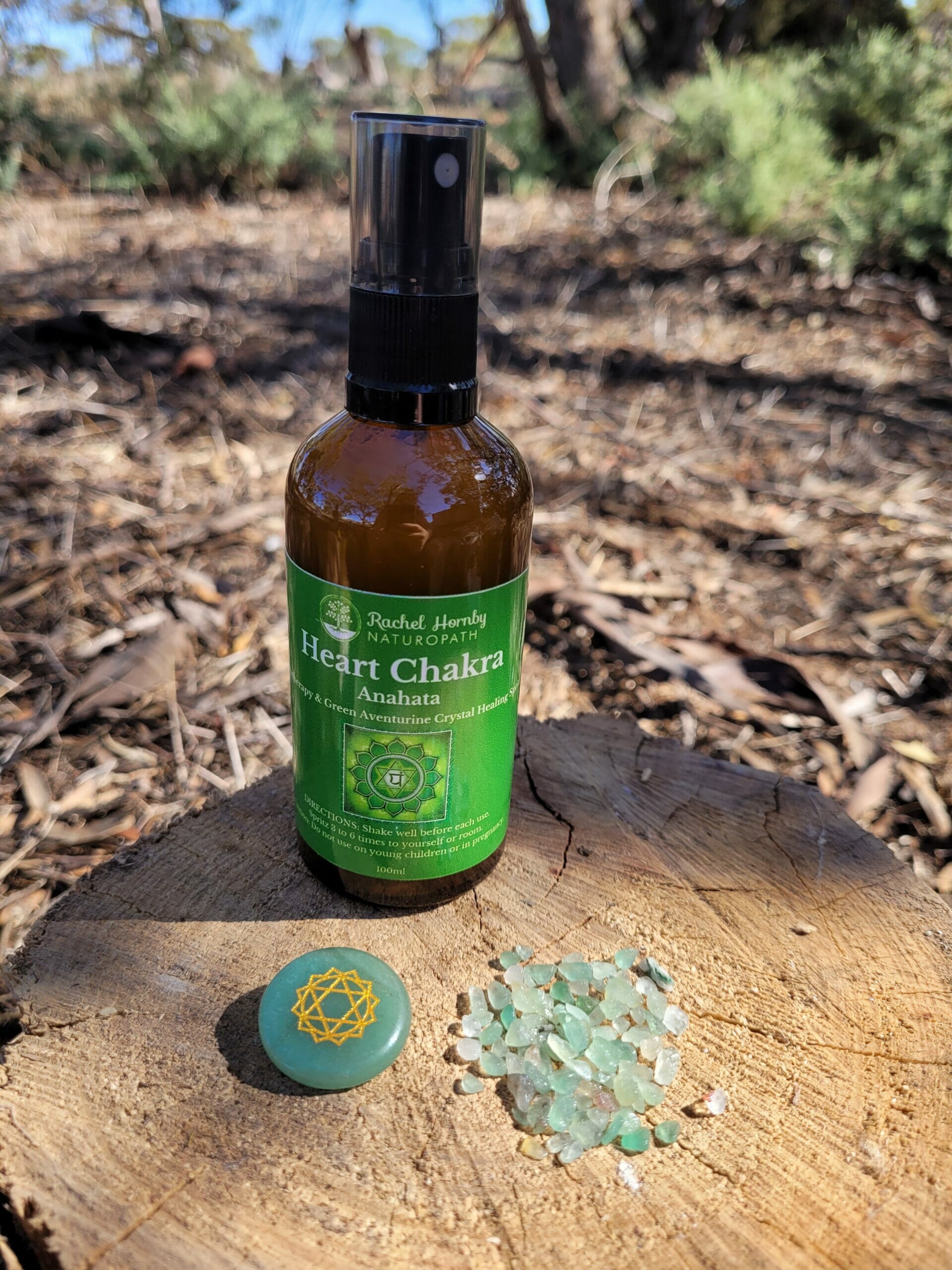 This Heart Chakra Mist Spray is a unique infusion of essential oils that support your Heart Chakra. Blended with all natural ingredients and Green Aventurine Crystals.